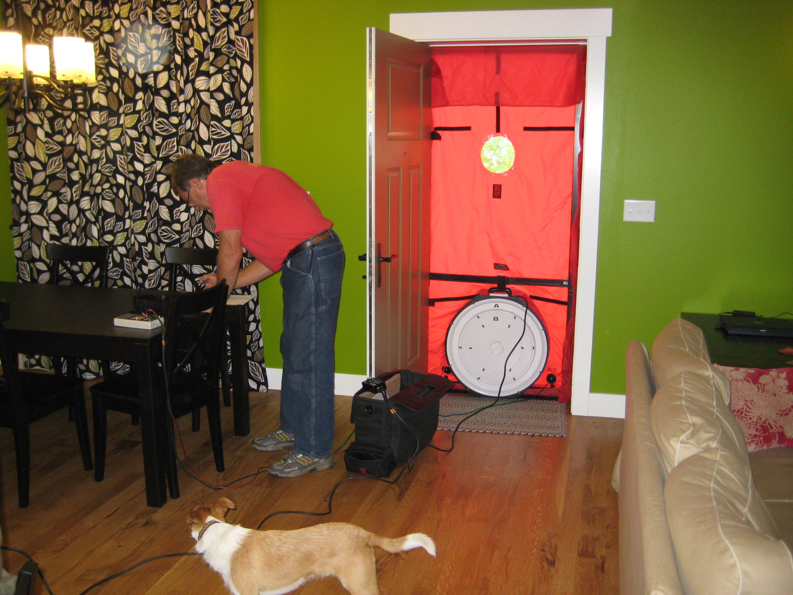 Last week, a representative from Energy Star visited to do a quality assurance blower door test -- and also to check out our project, because he was interested in seeing it. We didn't get to witness our previous blower door test, so it was interesting watching it happen. He was impressed and said that he thought our house was very well-constructed and would perform very well energy-wise. It was nice to hear more external validation of our builders' good work!